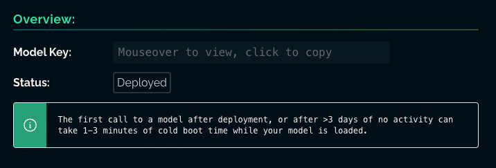 Every week we seem to be making various improvements to the UX. This week we added an informational tip within your Model Info to explain why your first call may be slow if you have had >3 days of inactivity with that model.